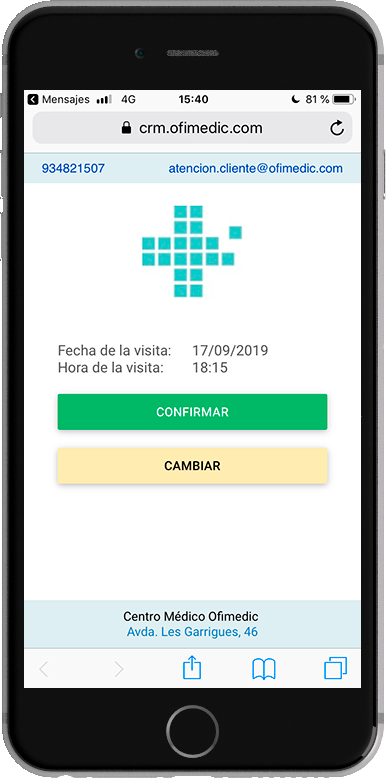 - Recibir la respuesta de confirmación de las citas de sus pacientes