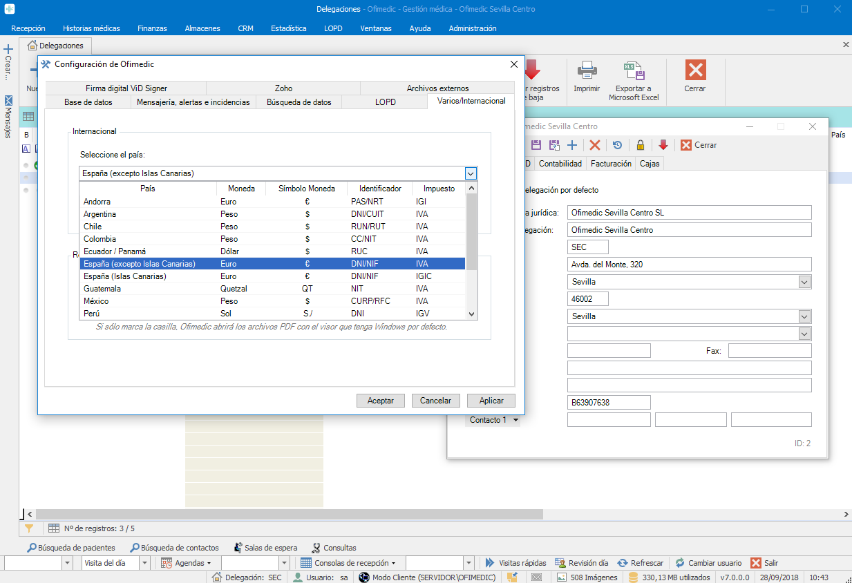 - Gestión de múltiples delegaciones asignando sus datos, usuarios, agenda, series de facturación,…